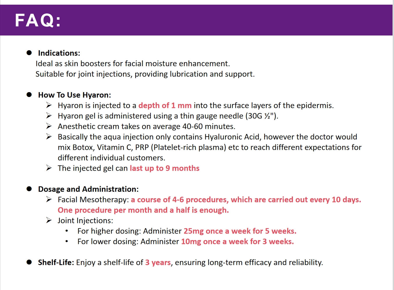 | Package | 10 syringe x 2.5 mL |