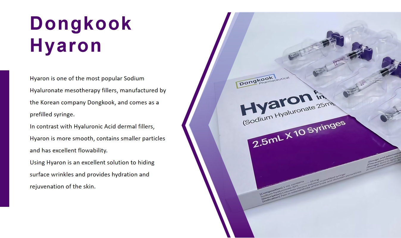Hyaron mesotherapy treatment helps rejuvenate and hydrate the skin cells. lt also restores volume, giving the skin afuller appearance. lt is also perfect for removing wrinkles, boosting skin condition, and general appearance. what’smore, the effects of this product last long on the skin, increasing the time between treatments