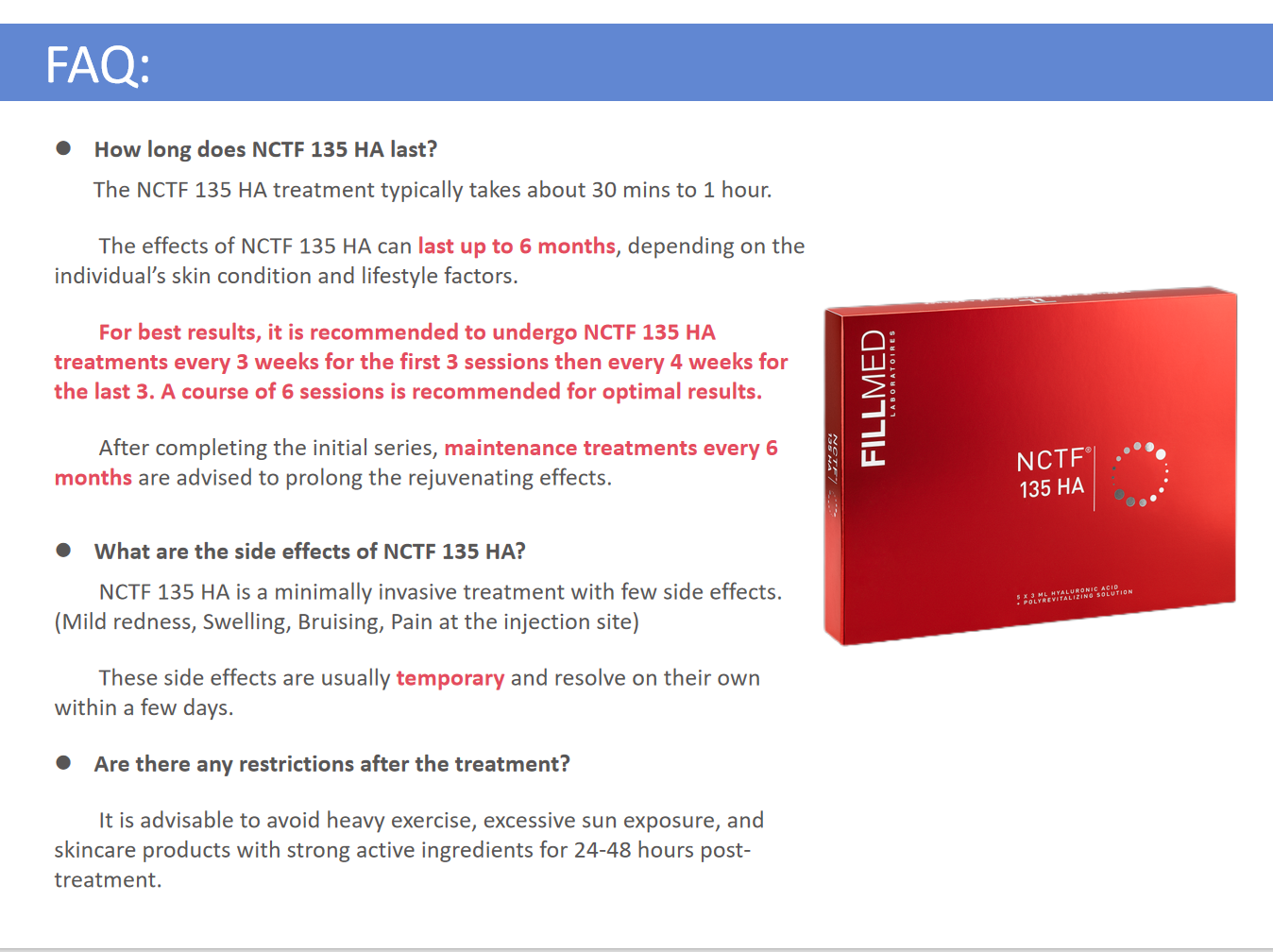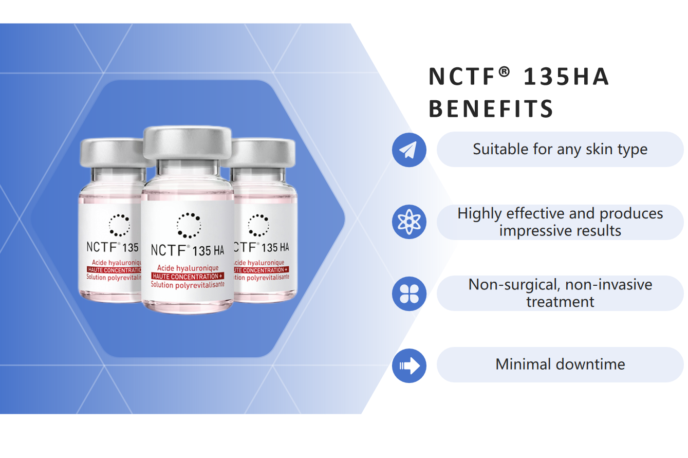 FILLMED NCTF 135HA is an anti-ageing mesotherapy product designed for intense revitalisation, hydration of tired or loose skin, treatment of wrinkles, and optimising skin brightness and radiance. The formula consists of 55 active ingredients (vitamins, amino acids, proteins, free radicals and anti-oxidants) to stimulate and repair ageing skin.