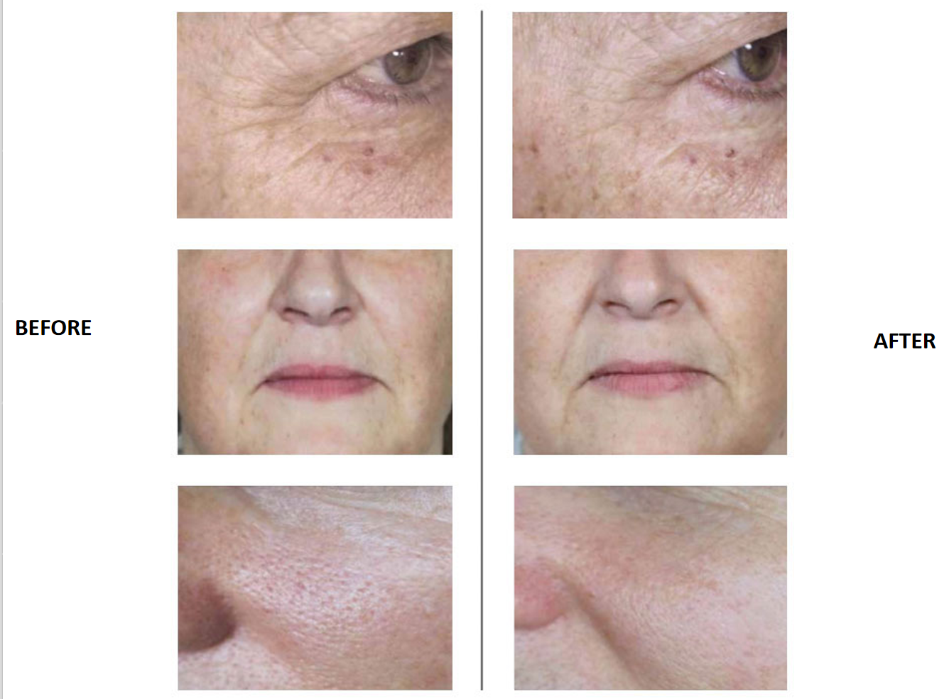 Treatment areas: Face, neck, back of the hands, inside of the arms, inside of the legs, abdomen