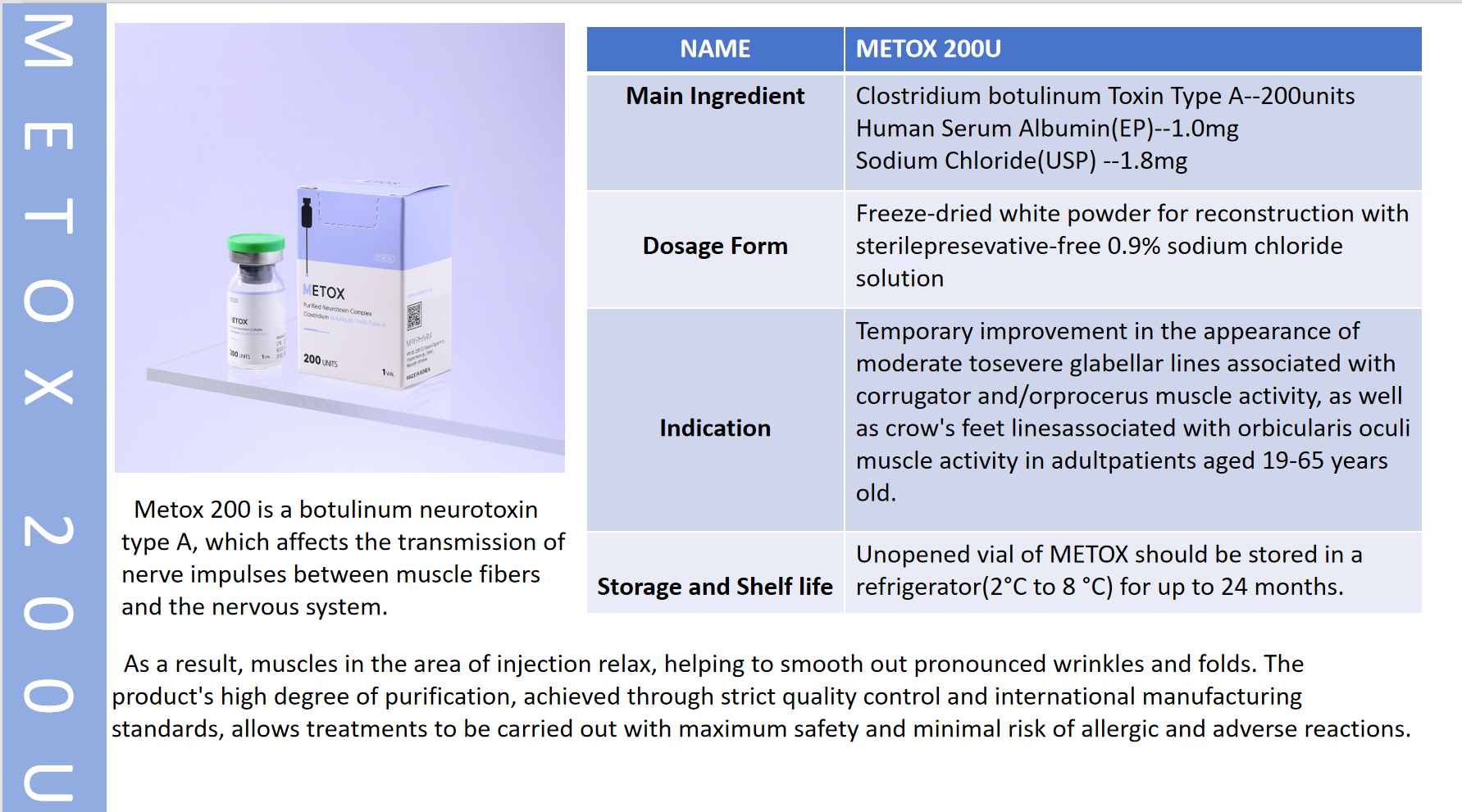 METOX 200units is designed for precise administrationallowing targeted treatment for optimal results.